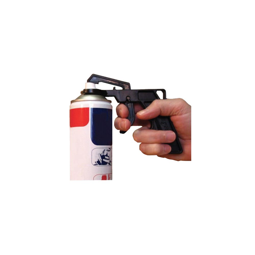 A strong glass-reinforced nylon trigger mechanism with a pistol grip that fits easily onto the top of an aerosol can, making operation and control of the can easier and safer, cutting down the risk of coming into contact with chemicals whilst spraying.