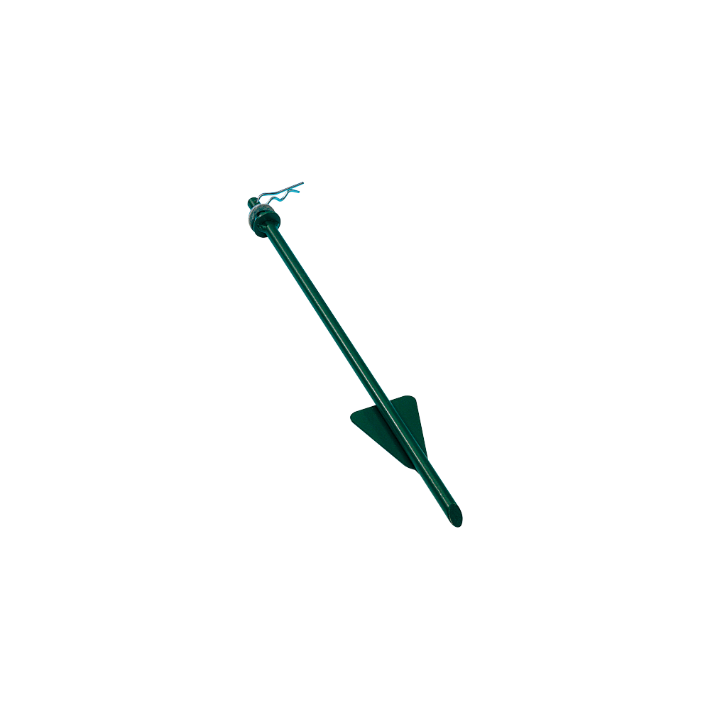 For securing tamper resistant bait stations to soft ground. Ingenious split pin allows removal of station for cleaning, only when station is opened with key.