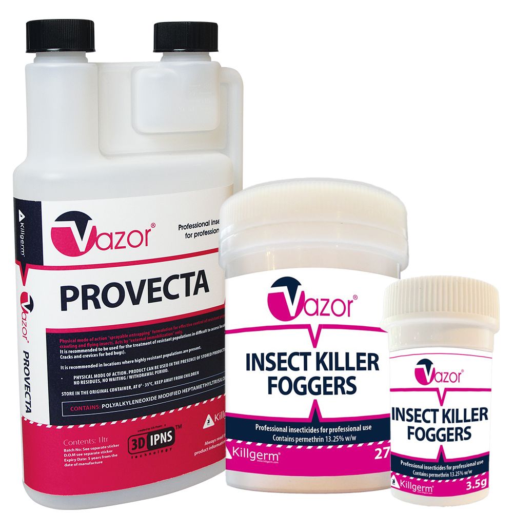 Vazor Provecta is a physical mode of action “sprayable entrapping” formulation for effective control of resistant populations of crawling and flying insects. This concentrate for dilution with water acts by causing external immobilization of target insects. Vazor Provecta is an excellent alternative to traditional insecticides and functions as a resistance management tool due to the physical mode of action. Based on Polyalkyleneoxide modified heptamethyltrisiloxane, Vazor Provecta is recommended to be used for the treatment of resistant populations e.g. bedbugs. It should be applied topically (directly) to insects such as bedbugs, cockroaches, spiders, ants, flies & mosquitoes, stored product insects. Vazor Provecta can be applied as a coarse spray or fine mist. Benefits include: