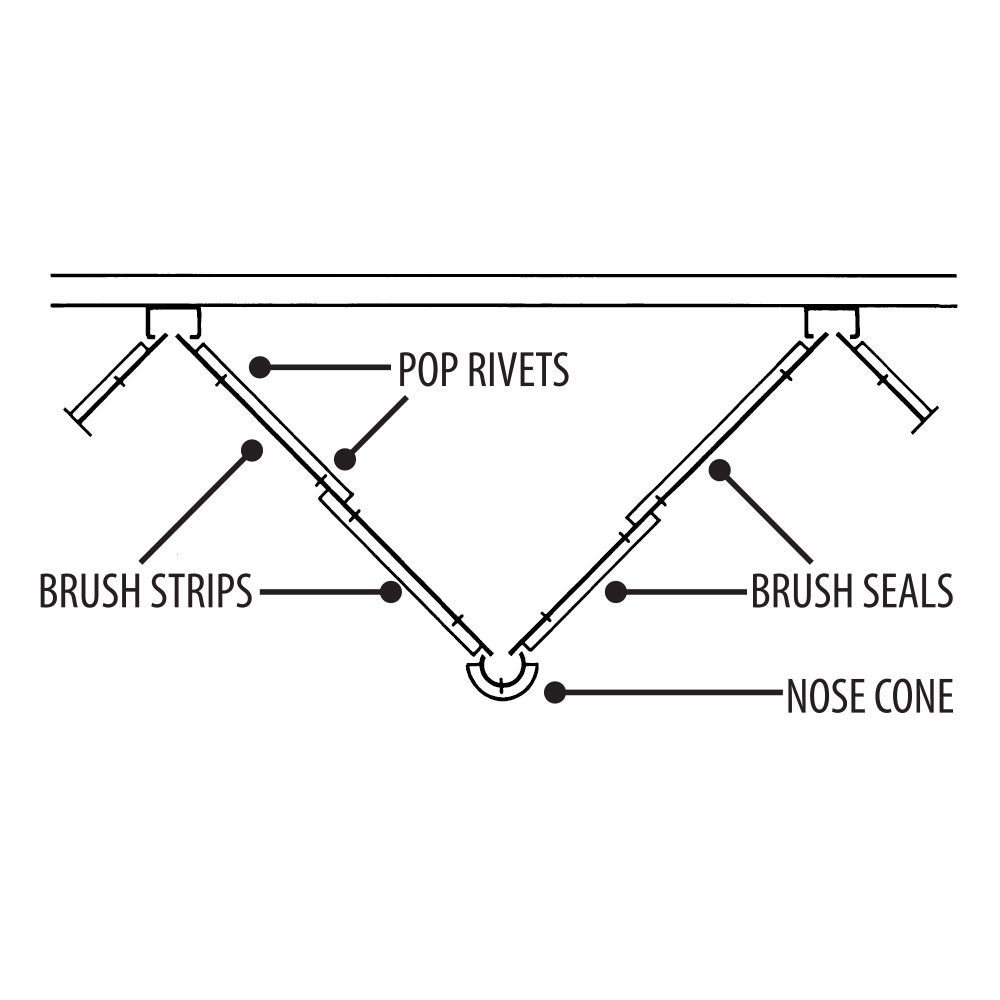 When sealing the bottom only of a concertina door, each panel requires two pieces of bristle strip and for every two panels ordered, one nose cone will also be supplied. Complete kits will be made up to suit the type of door to be sealed.