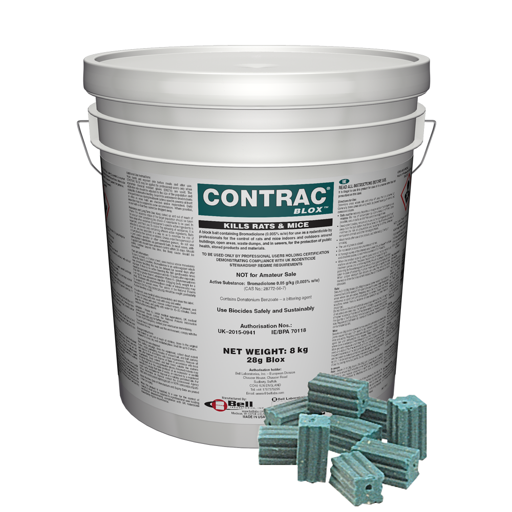 A cereal based 28gm block formulation with a low wax content and a special blend of food grade ingredients. The multi-edged design gives rodents plenty of gnawing surfaces. A hole in the centre makes it ideal for slipping onto security rods. Contains Bitrex™.