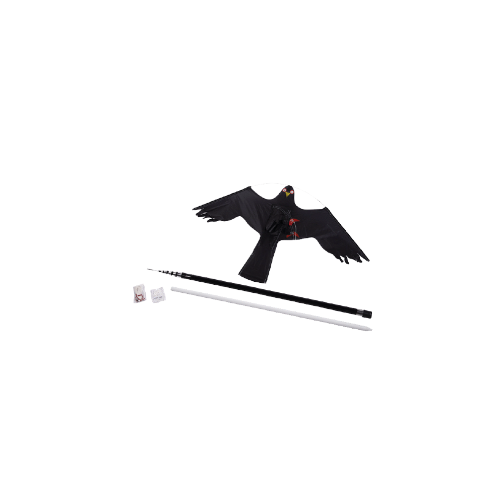 Tethered hawk kite scares pest birds away by constantly weaving and hovering