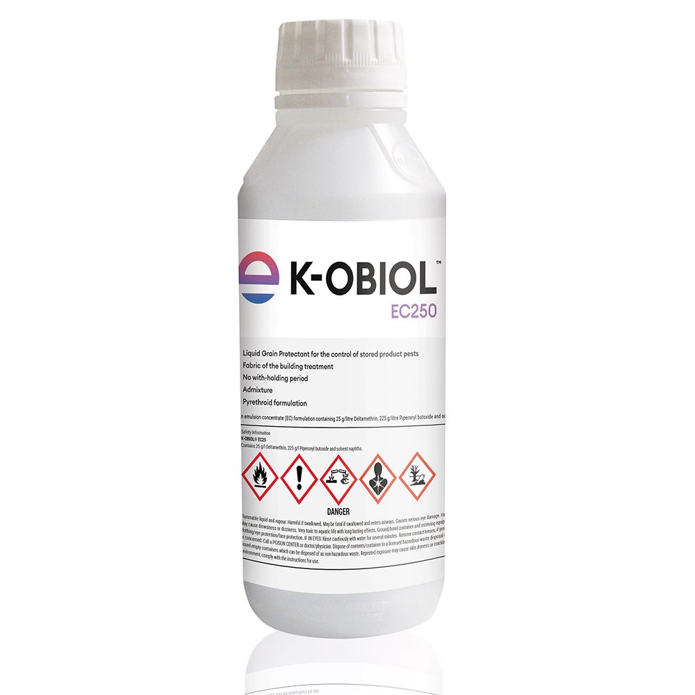 K-Obiol® EC25 is a powerful liquid grain protectant combining deltamethrin and piperonyl butoxide to provide effective, long-lasting control of stored product pests. Suitable for fabric treatments and direct grain application, it ensures up to 12 months of pest protection without a withholding period, maintaining grain quality and safety. Easy to dilute and apply, it’s an essential solution for grain storage and pest management.