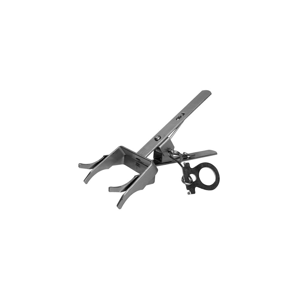 A scissors-action mole trap, the top section of which stands above the soil allowing ease of checking.