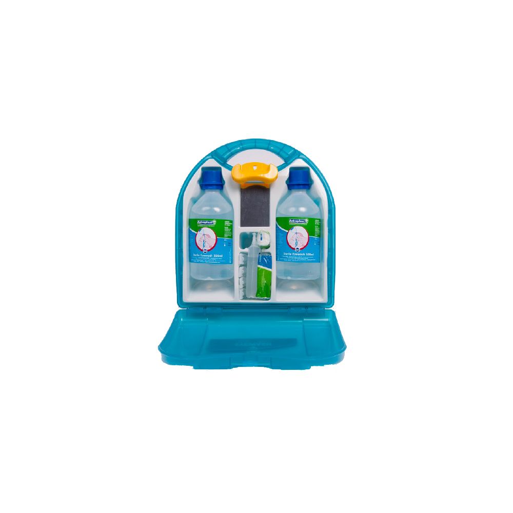 Constructed from tough plastic making it both practical and durable. The interior is compartmentalised for easy location of products in an emergency and it comes complete with a bracket for fixing onto a wall. This eyewash dispenser is HSE compliant. Rapid response is required for any eye injuries sustained in the work place. Contains: