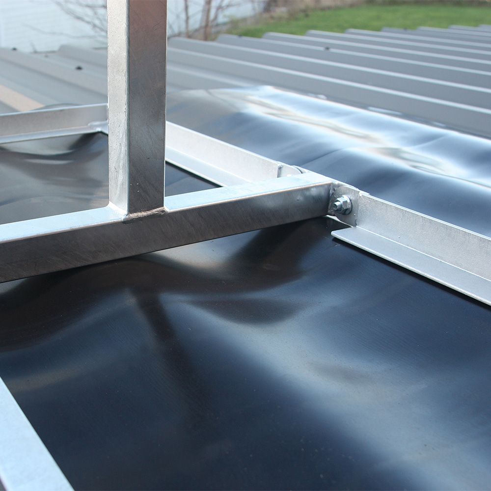 Position the NSS Neoprene Rubber Mat directly onto the roof surface at the intended mounting location. Ensure the surface is clean and free from debris before placement. Install the compatible non-piercing roof mount system on top of the mat in accordance with manufacturer installation guidance.