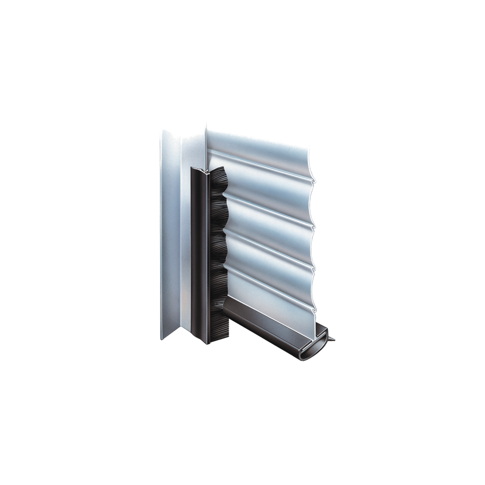 A clip on uPVC carrier with brush insert for proofing the vertical guide rails of roller shutter doors, typically used on warehouses, industrial units, etc. Together with the Bumperseal, also shown, the Rollerseal provides a complete proofing system for roller shutter doors.
