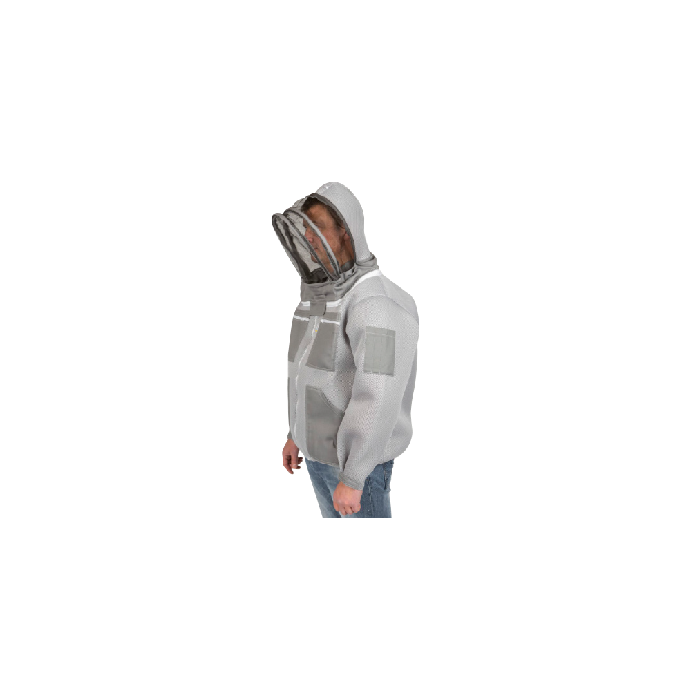 A high quality grey beekeeping jacket offering greater protection than conventional beekeeping clothing.