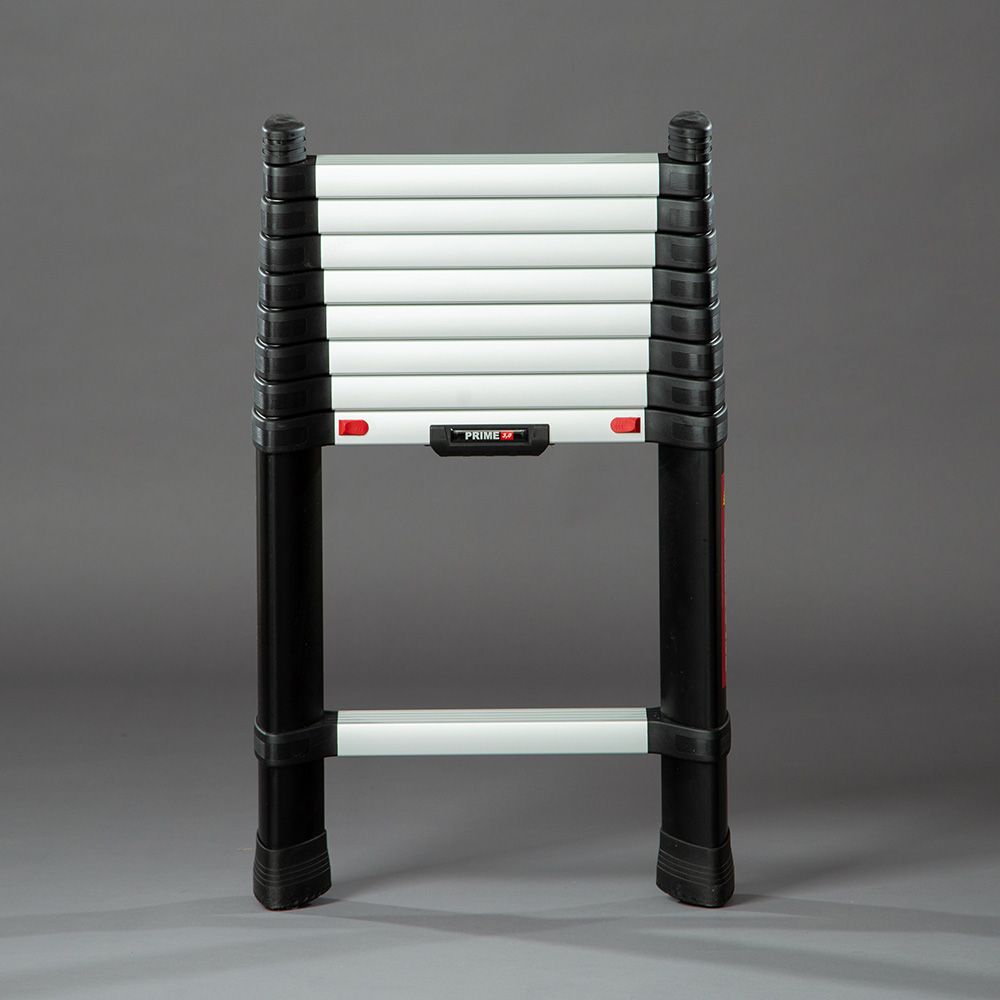 The Telesteps Prime ladder is the first telescopic ladder with the triangular tube design making the ladder torsionally rigid and stronger than ever before. The ladder has been designed to be used at a 75 degree's leaning angle. The 80mm wide steps are positioned to be flat when the ladder is leaning against the wall giving that extra comfort under the foot. The 3metre version has 9 x 80mm treads and when it is fully extended it has a working height of 3.8metres, when the ladder is fully closed it measures a mere 79cm, perfect for a compact storage unit.