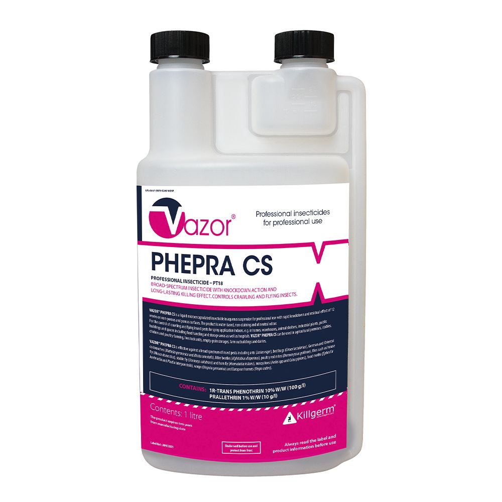 Vazor® Phepra CS contains 1R-trans Phenothrin 10% w/w (100 g/l), Prallethrin 1% w/w (10 g/l)