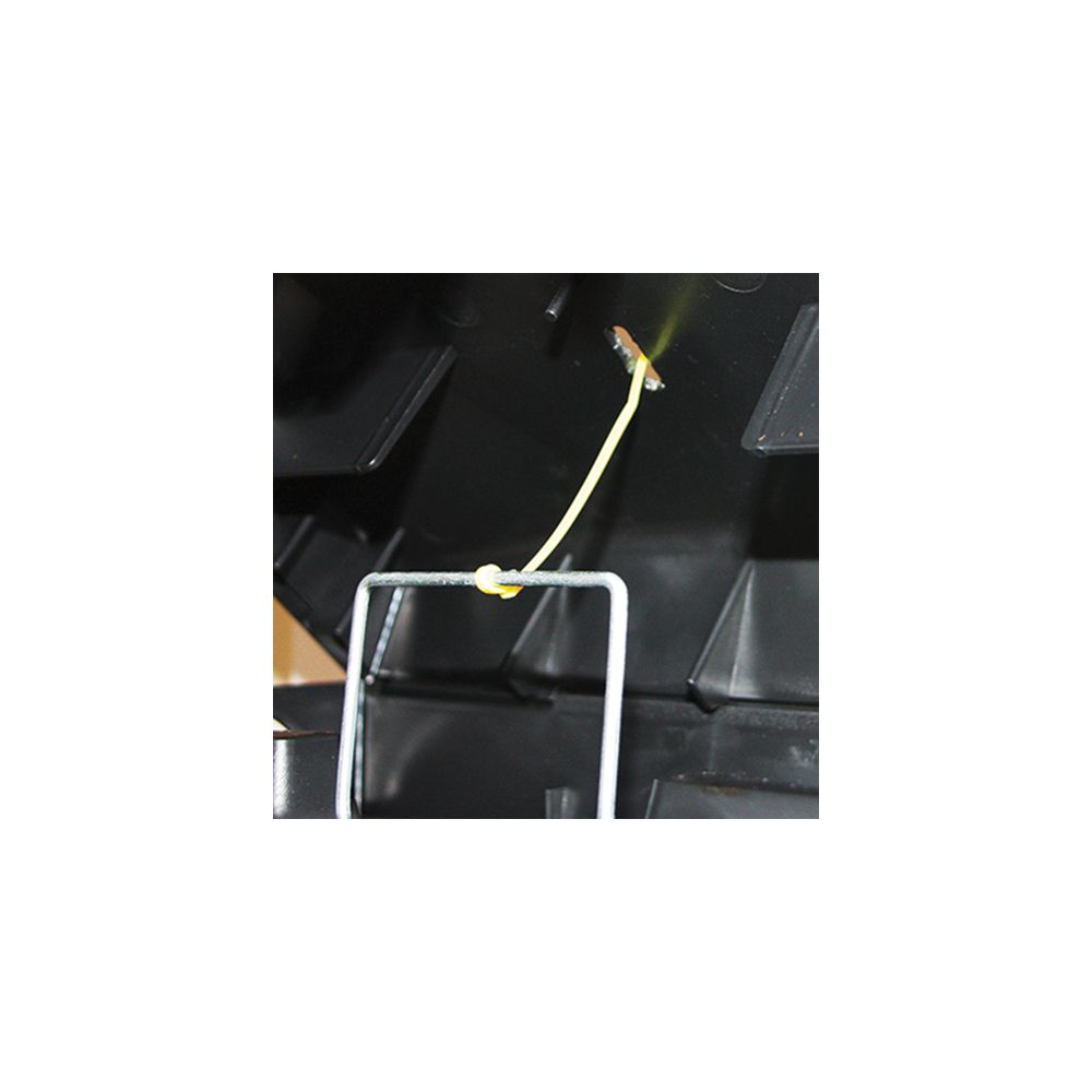 The yellow cable tie can be attached to the snapper bar of a rat trap when using the inspection slot in the AF Atom. The yellow cable tie allows for quick and easy identification of triggered traps from a distance. Making it easy to clear and reset traps.